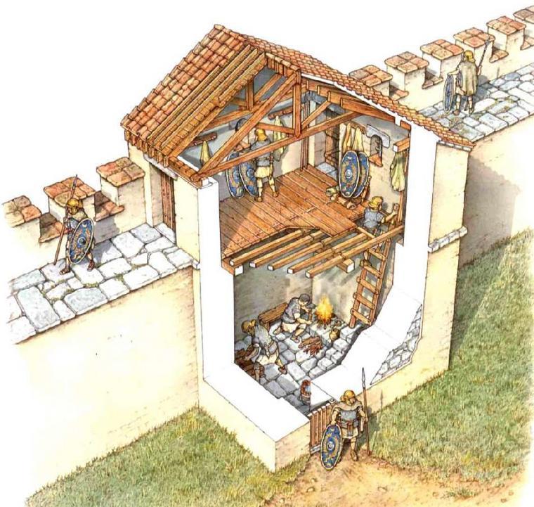 below: Inside a tower fort.